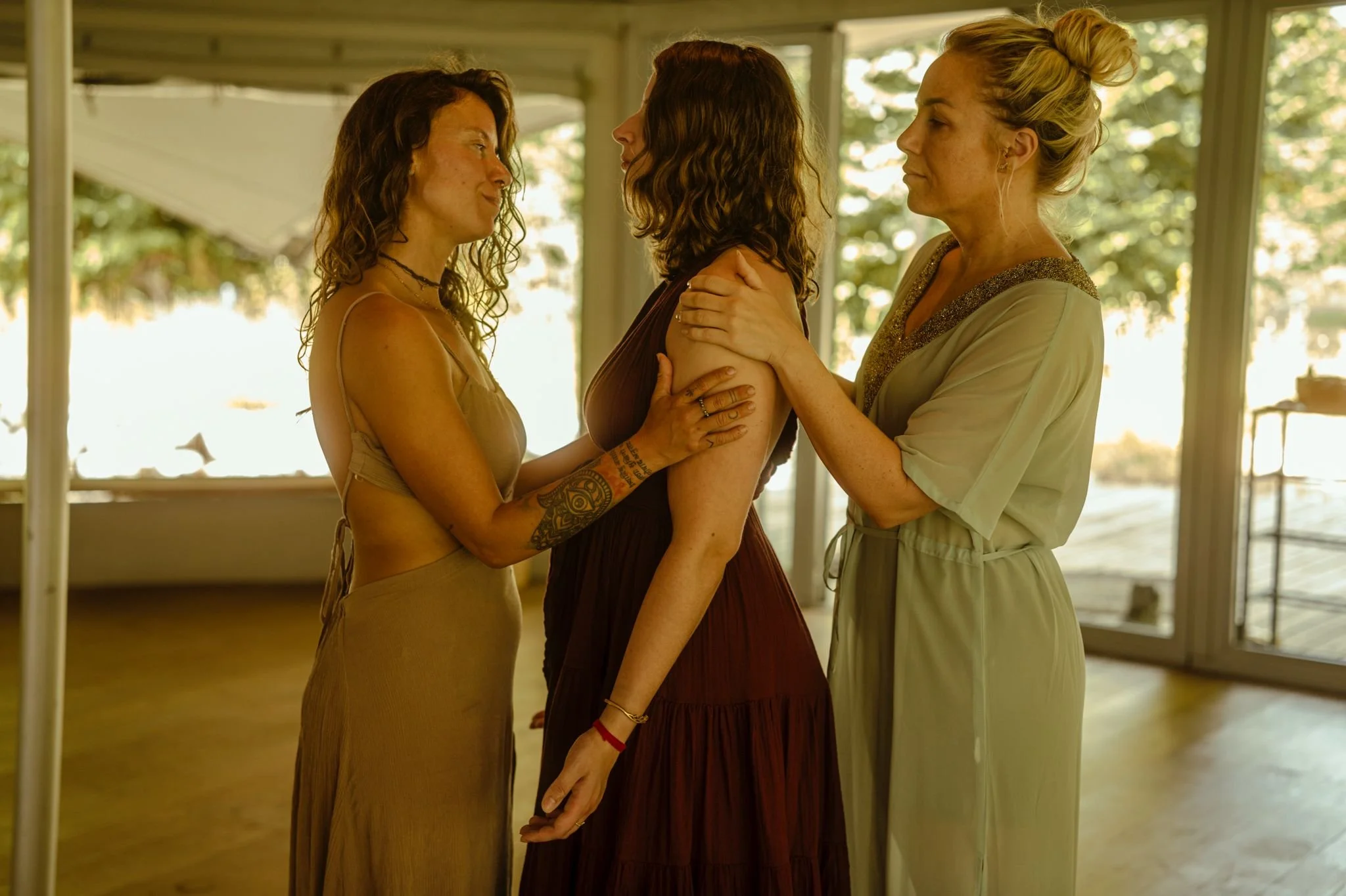 Wir sind überzeugt, dass die Teacher*innen der Zukunft durch Verbindung, Präsenz, Haltung und tiefe Verkörperung wirken — hier mit dir zu landen, ist unsere tiefe Absicht.
